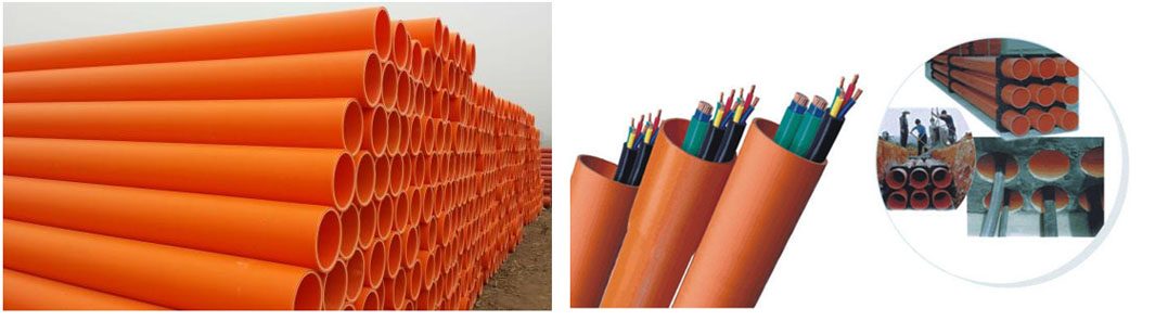 PVC-C樹脂為母料,加入抗沖劑,穩(wěn)定劑等輔料經(jīng)高速擠出而成的新型埋地式高壓電力電纜保護管。